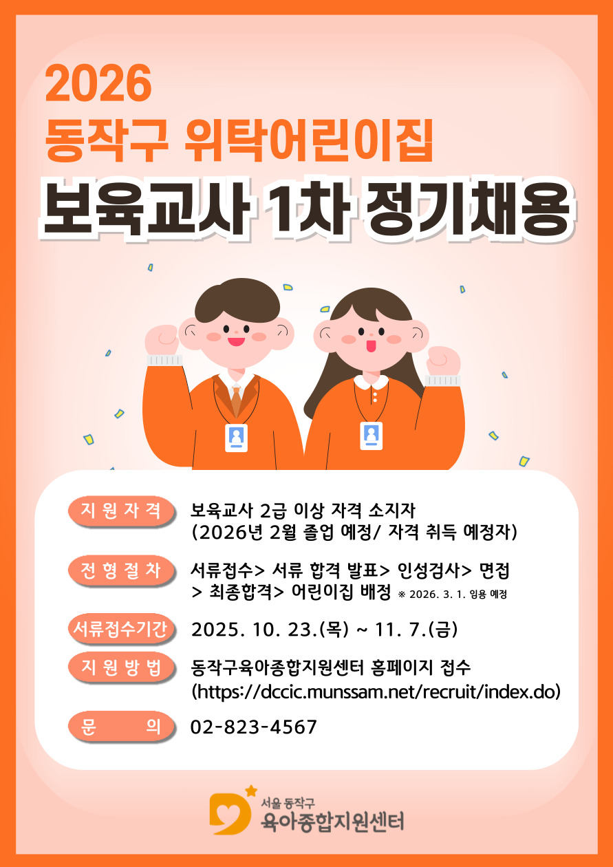 [취업광고]2026년 동작구 위탁어린이집 보육교사 1차 정기채용 안내